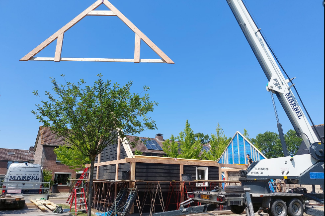 Wij vinden het super belangrijk dat u project uniek is en daardoor brainstormen wij graag met u mee net zolang wij uitkomen op u droomproject welke wij efficiënt in onze ruime werkplaats kunnen voorbereiden en in een korte tijd bij u thuis komen plaatsen en afwerken vaak met behulp van onze eigen kraan .